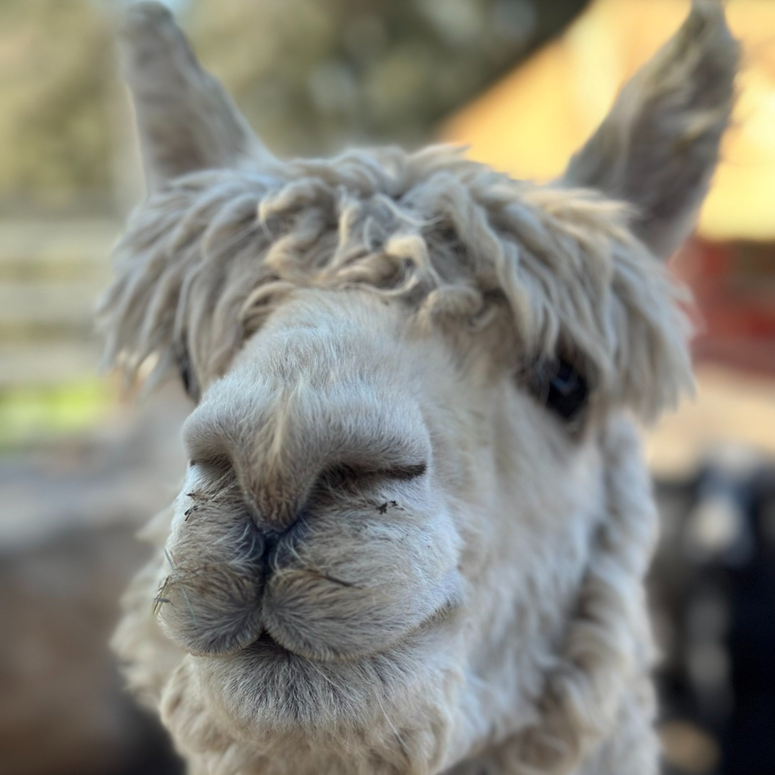 Nelson is our male alpaca. He hated to be touched because he came to us from a children’s petting zoo. Left in front of the police station, tied to a pole, Nelson is happy he made out to The Pond Digger Ranch. We never force him to allow us to pet him. After nearly two years of a avoiding us, Nelson is finally coming to us for some occasional petting. His favorite food in the world is a sweet tasty grape.