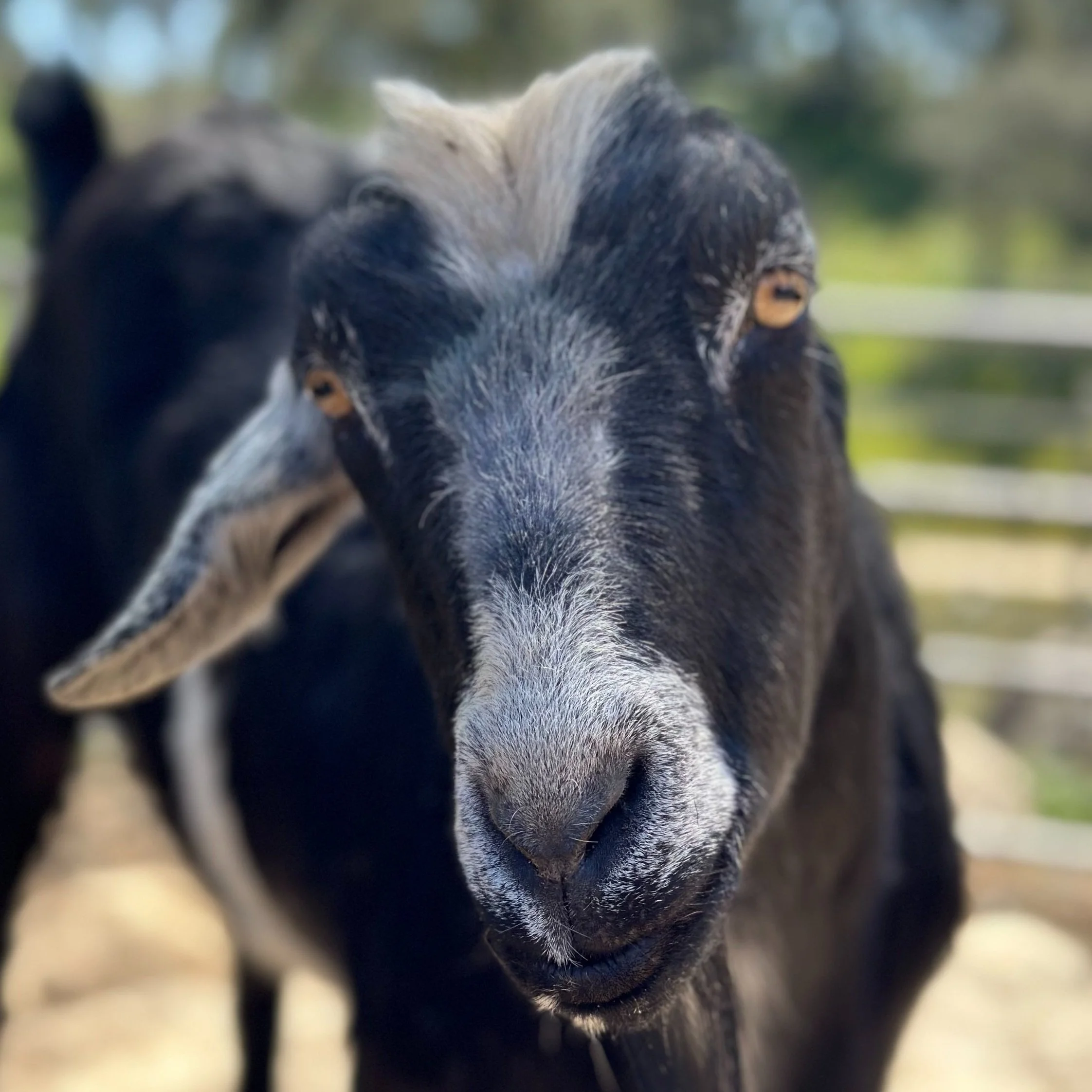 Molly, Dory, and Nala are a package set. Molly came to us when she lost her home due to a move. Her big secret was revealed a few short weeks after her arrival when she gave birth to two beautiful girls, Dory and Nala. Molly and her daughters now live in the Charlotte’s Web Barn, and enjoy warm days in the outdoor goat area.