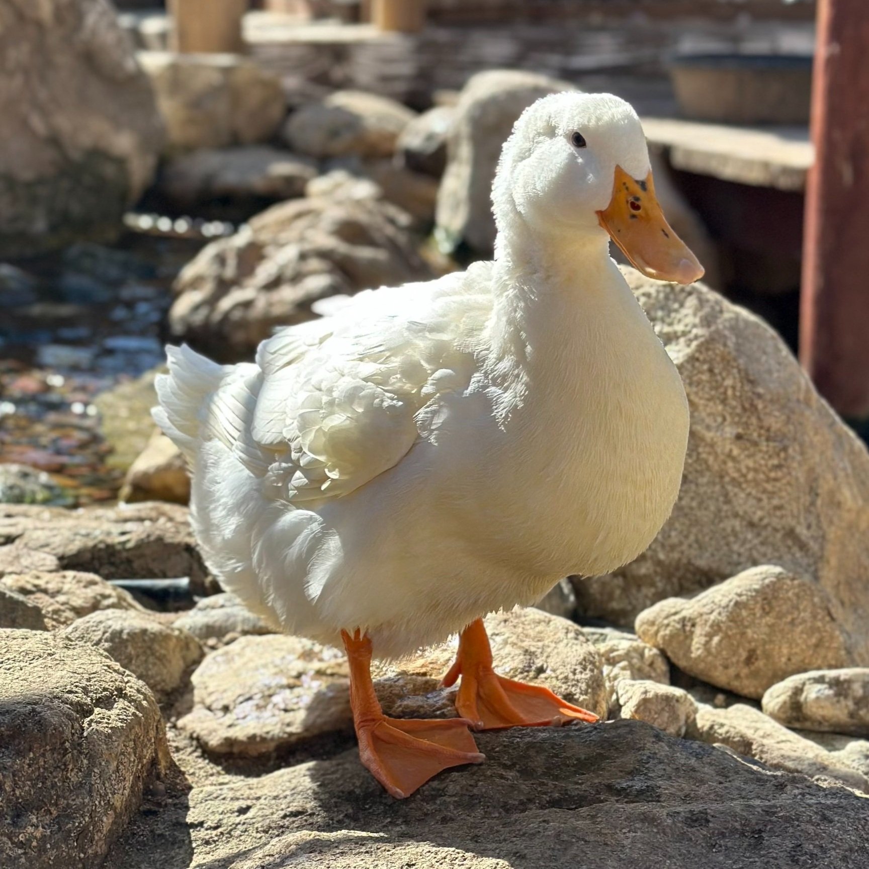 Rubber Ducky was found abandoned in a park, in a basket, as a very small duckling. Luckily a caring park goer found her and called Pond Digger Ranch.