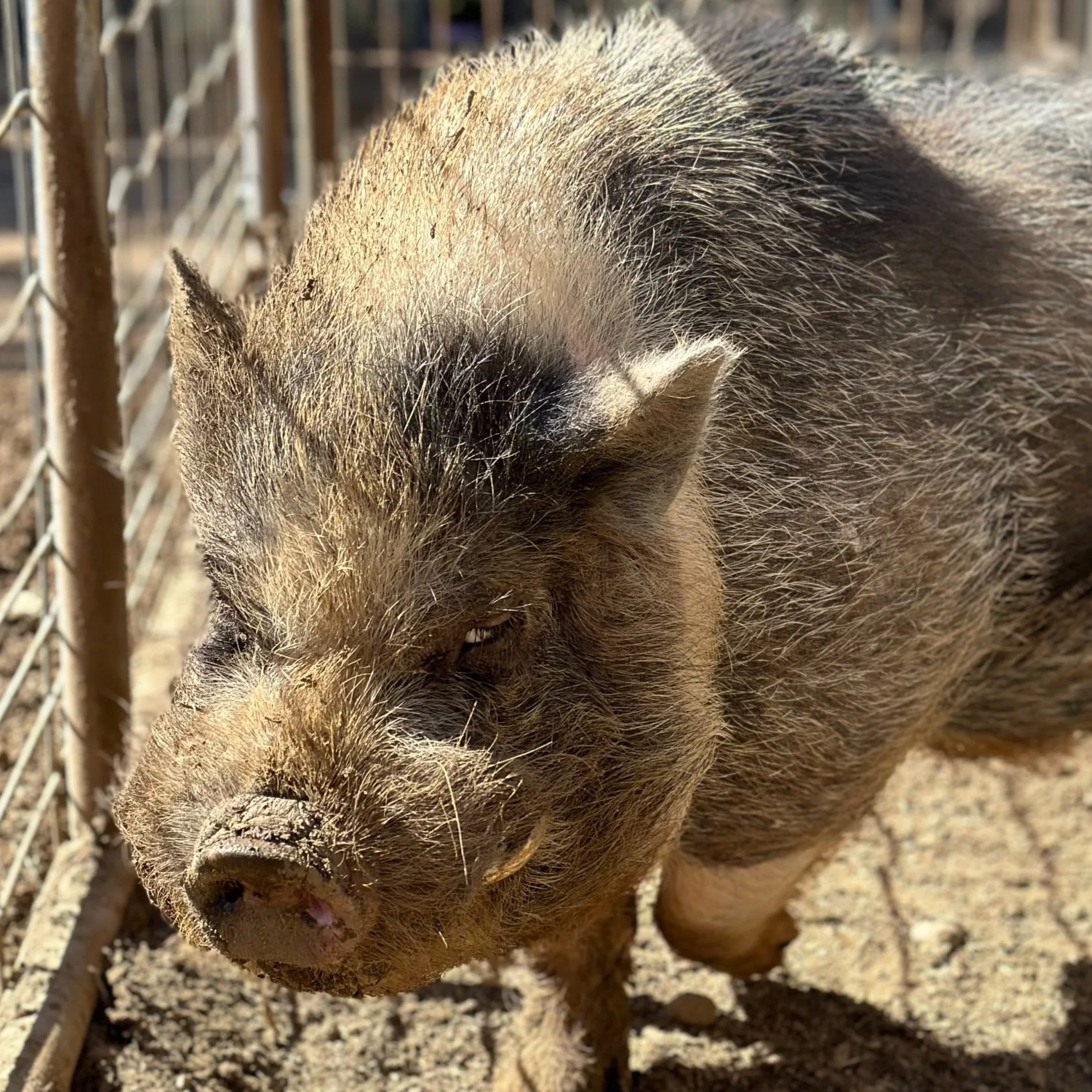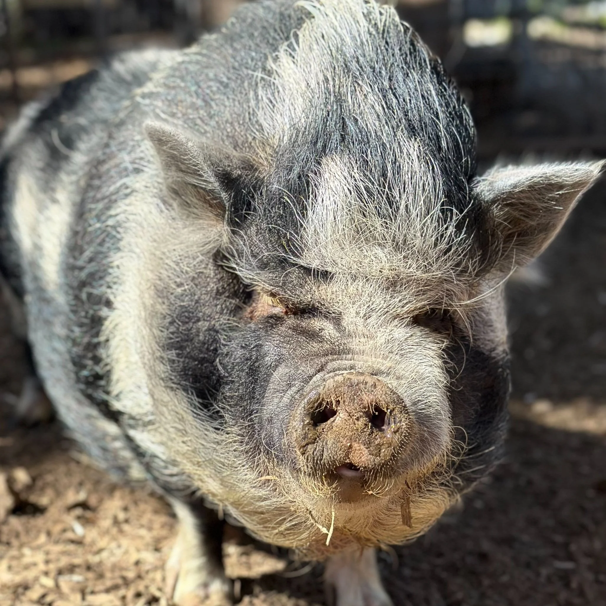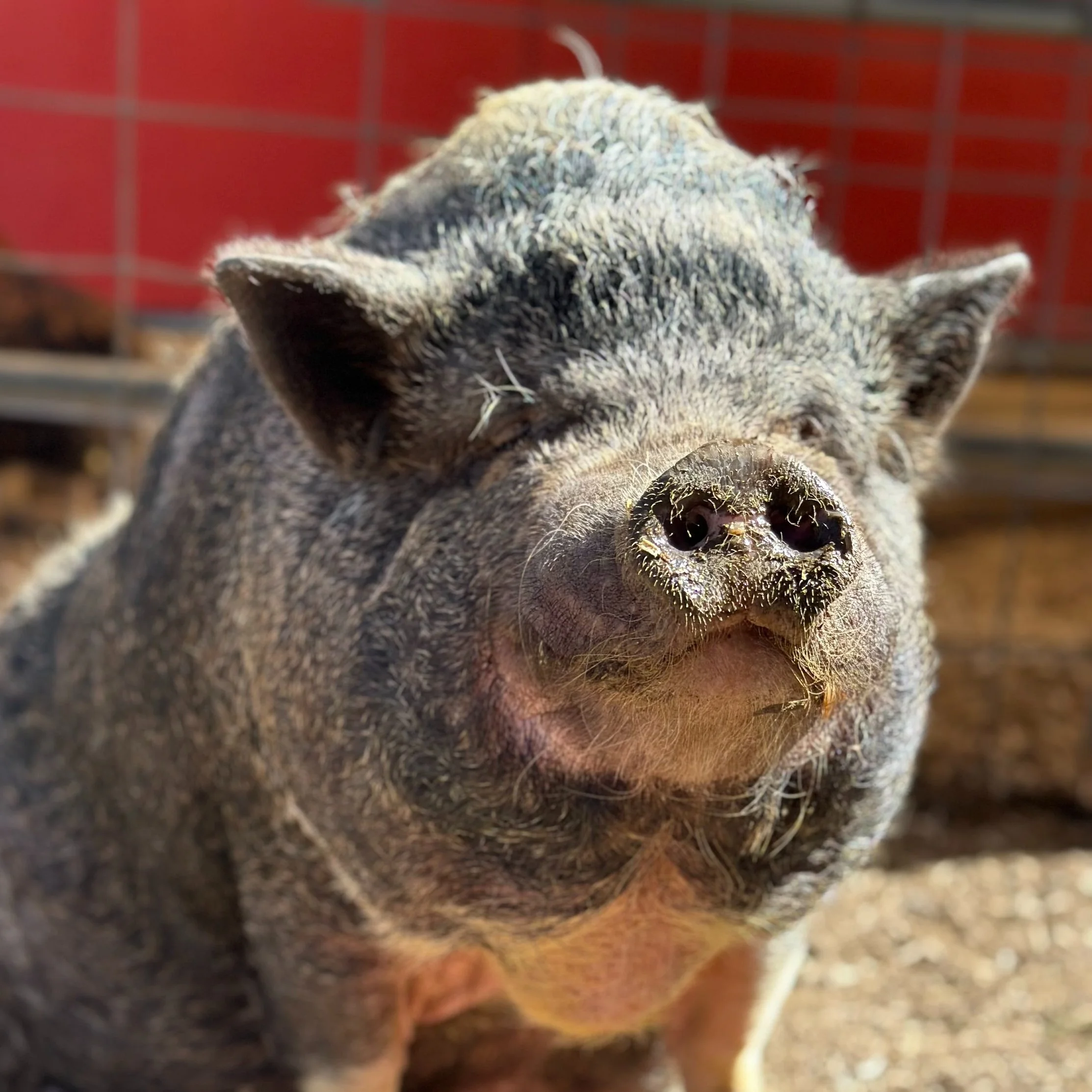 Angus was a actually a present for Leslie! Eric arranged for him to be delivered to our front door steps on Leslie’s birthday! She had always wanted a partner for Bambi and to have little piglets of her own!