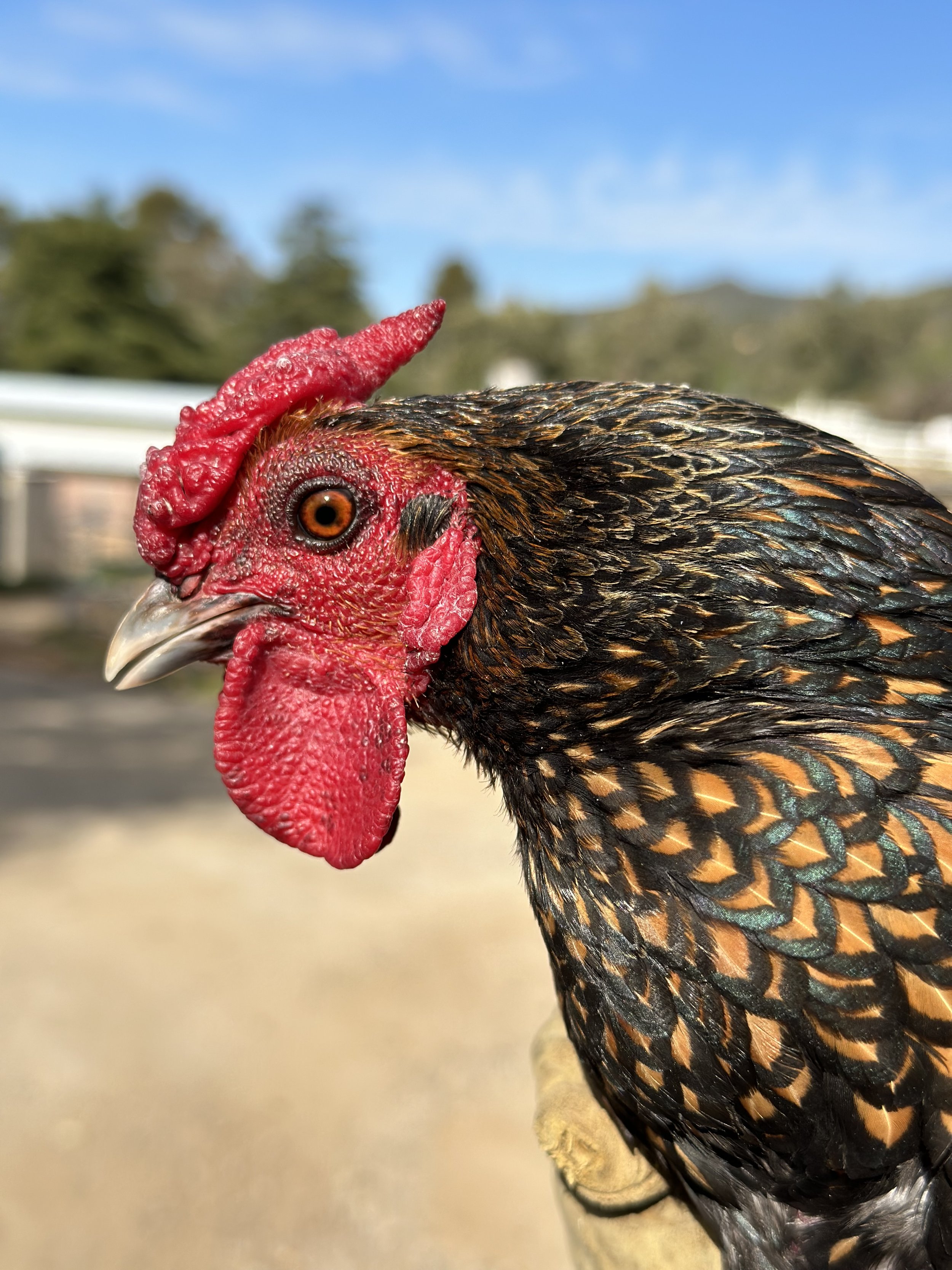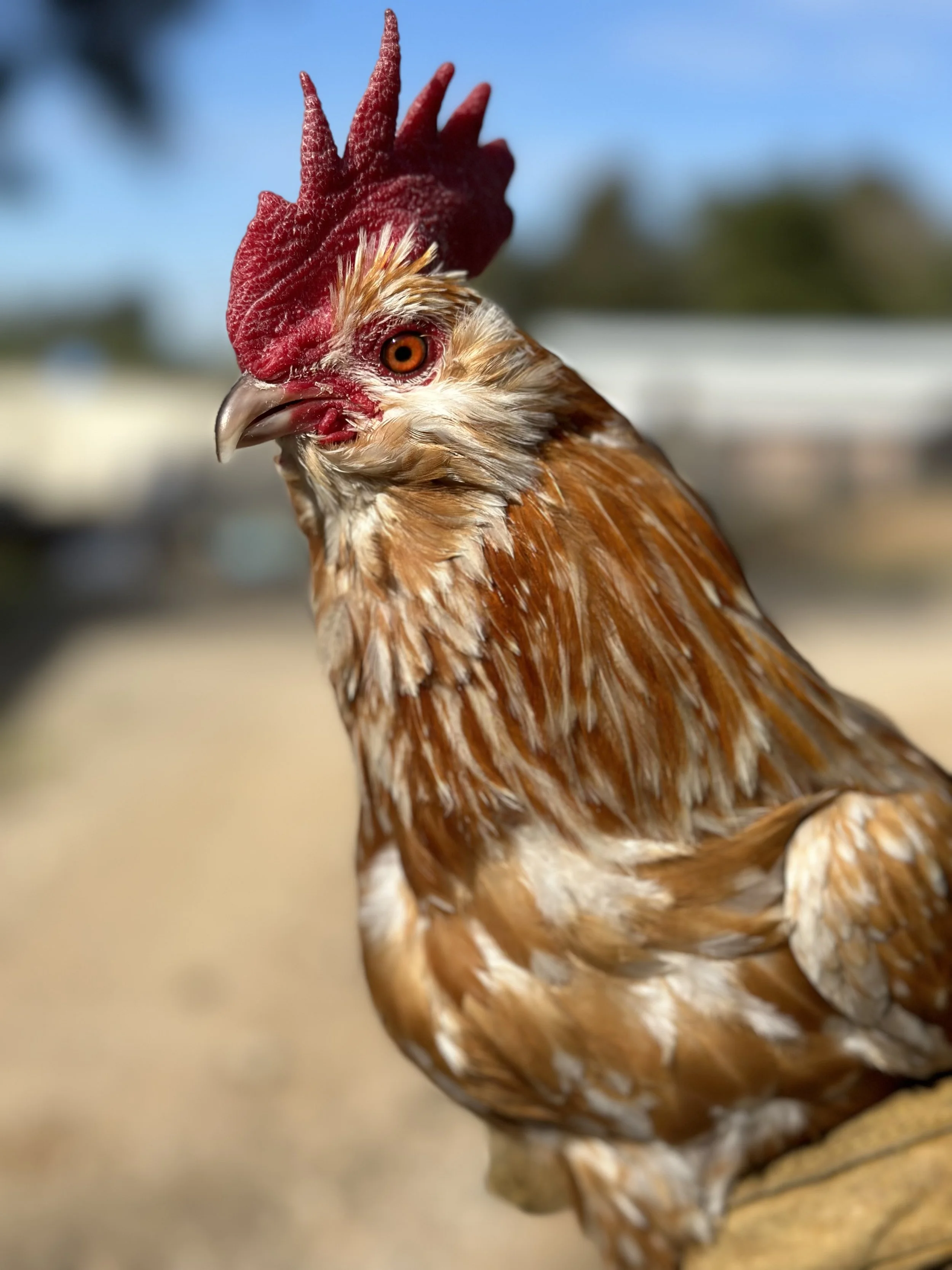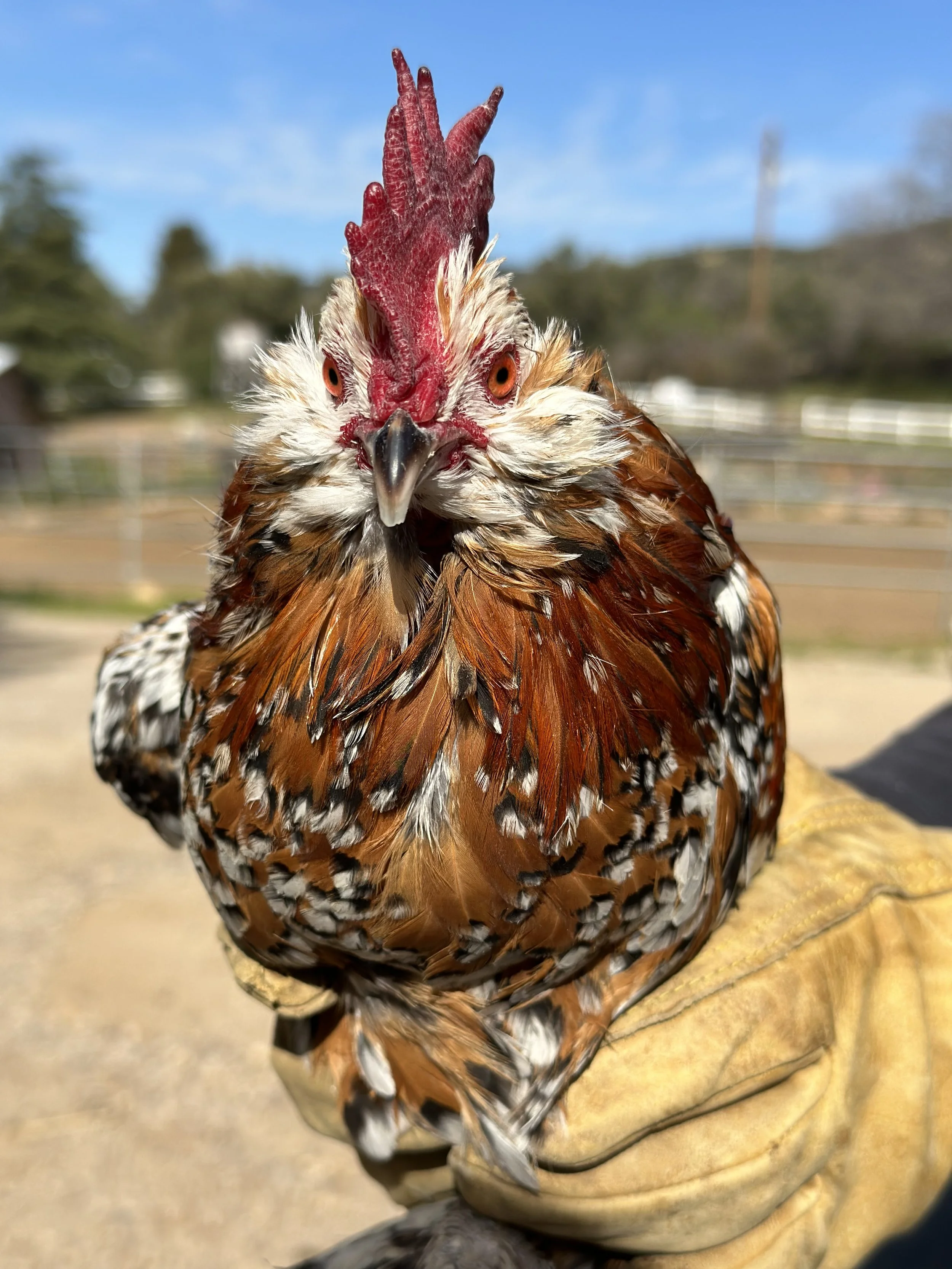 Lacy, Speckle and Freckle are Mille Fleur Roosters